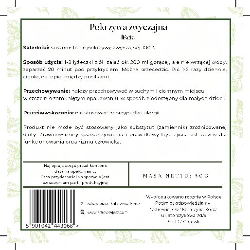 Pokrzywa to bardzo znane, cenione i od stuleci stosowane zioło. Napary z pokrzywy wykazują działanie: oczyszczające organizm z substancji toksycznych, moczopędne, wspierają procesy krwiotwórcze, ogólnie wzmacniająco na organizm, korzystne na włosy, skórę, paznokcie, wspiera układ odpornościowy, zmniejsza obrzęki.
